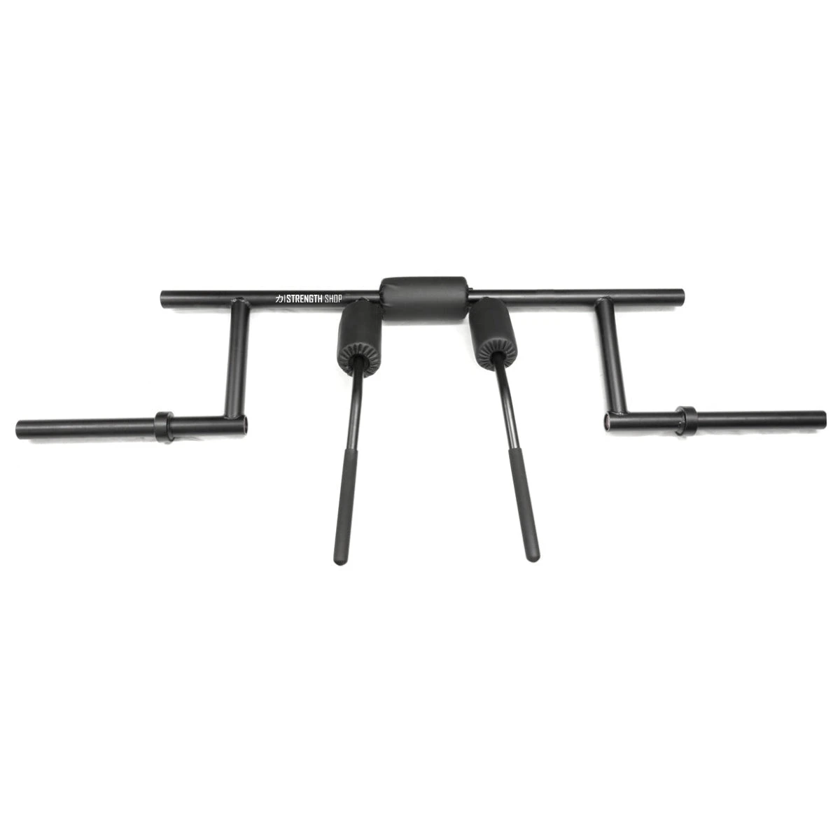 The Spider Bar combines the features of a Safety Squat Bar and a Cambered Bar, with extra-long handles to reduce shoulder strain and add variety to squat exercises. Its design requires more engagement from the upper back compared to standard squat bars.