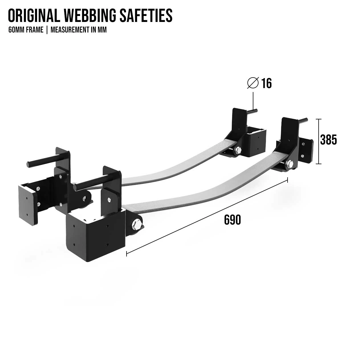 - Strap Material: Heavy-duty nylon webbing to suit a 690mm distance between uprights