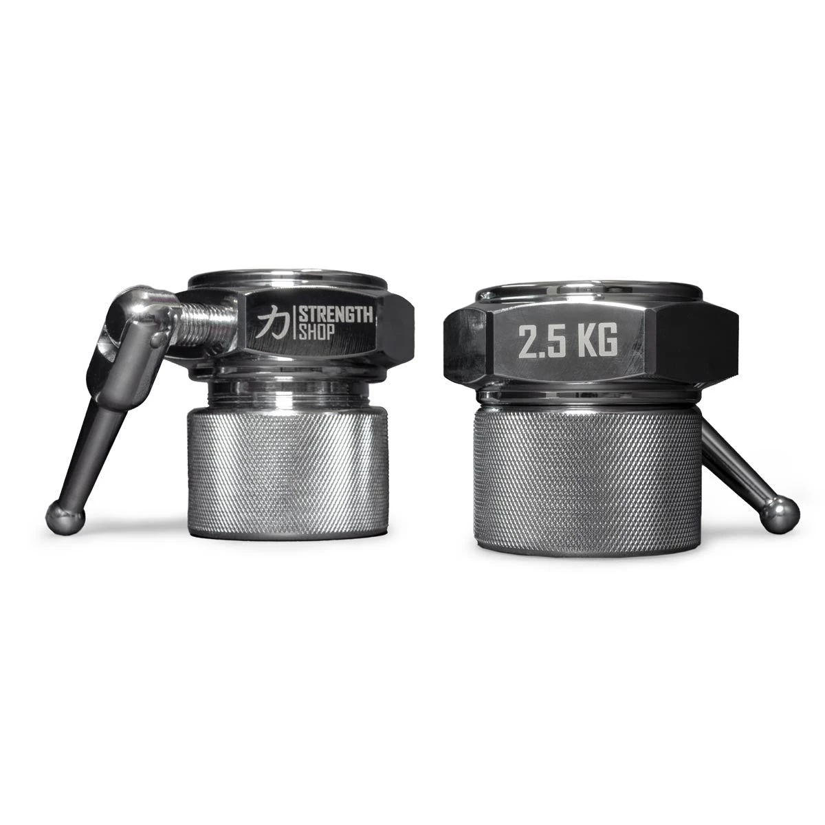 Strength Shop competition collars are state-of-the-art competition equipment. These collars are made from solid steel with a chrome finish, weighing 2.5kg each.