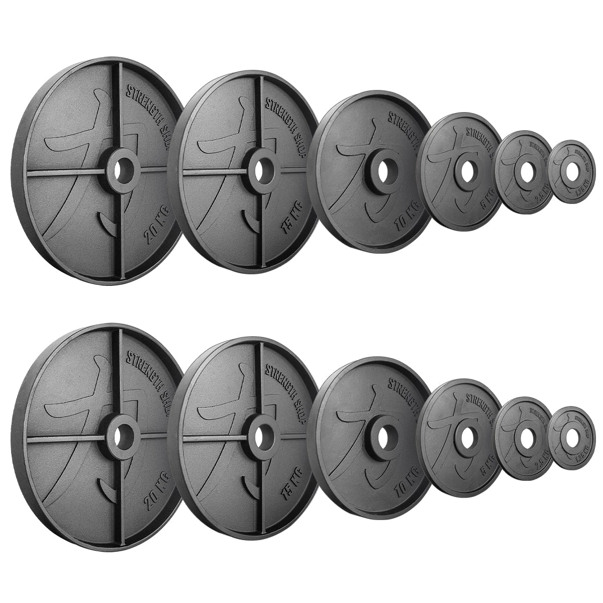 - 107.5kg Set: 1.25kg x 2 | 2.5kg x 2 | 5kg x 2 | 10kg x 2 | 15kg x 2 | 20kg x 2
