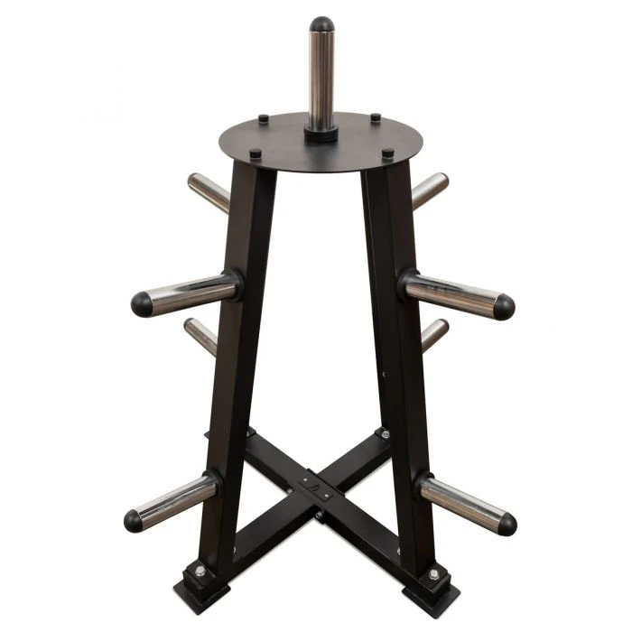 With four sturdy uprights, each featuring two plate storage pins, plus an additional top-mounted pin, this plate tree provides ample storage space for plates of different sizes. The 22cm-long plate sleeves are spaced optimally to accommodate all standard Olympic weight plates, keeping them secure and within reach.