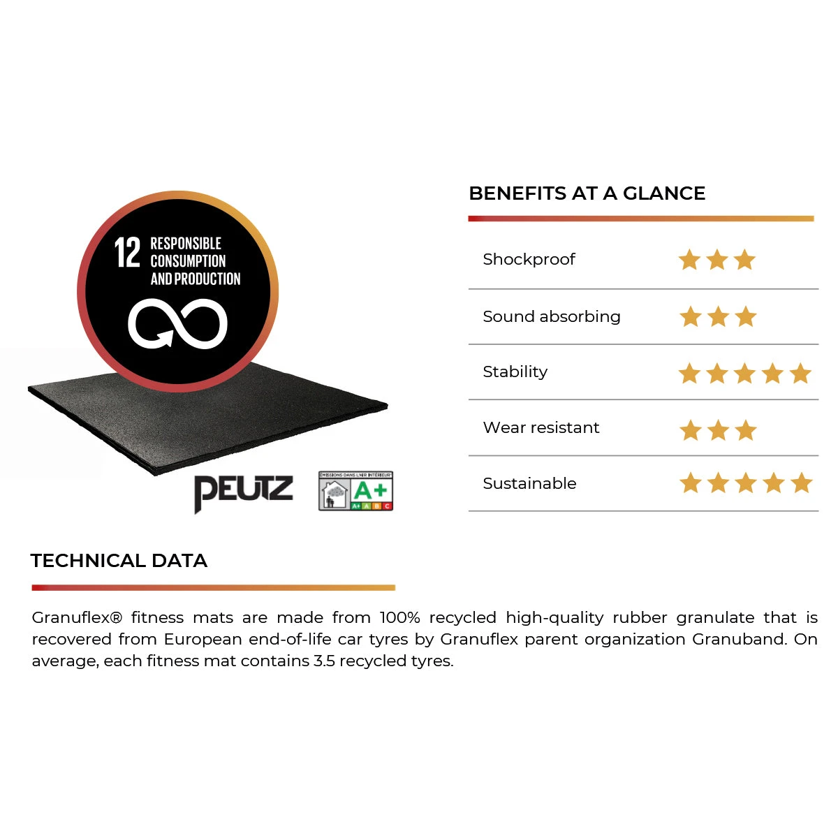 High quality gym flooring designed for weightlifting areas, where heavy and frequent impacts are expected, no matter what the sport.
