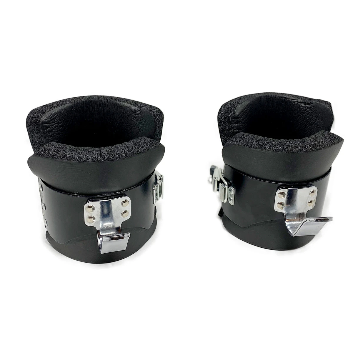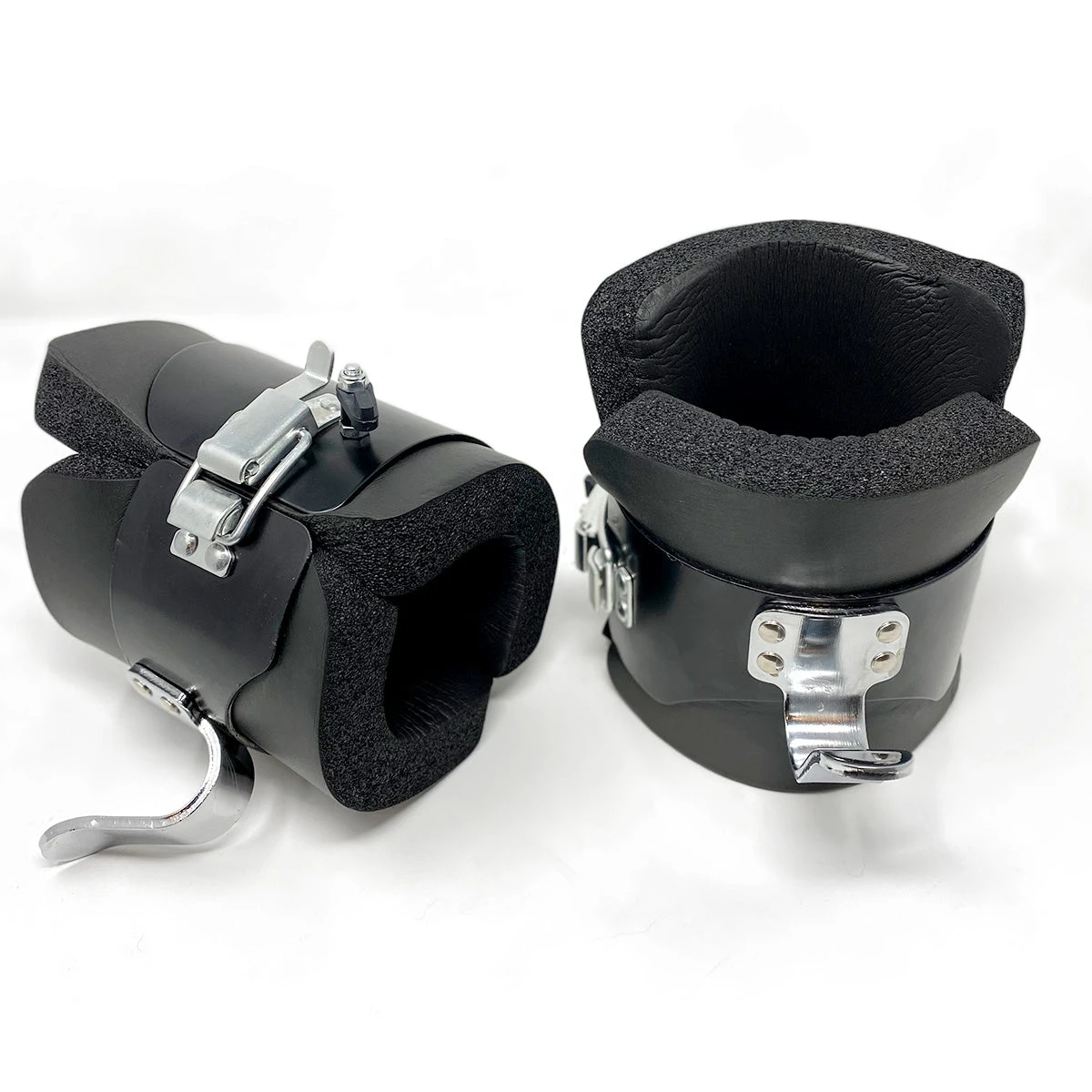 The boots are fitted with comfortable but firm foam padding which is then latched into place around your ankles and secured with a safety catch. Solid steel hooks on the front attach to most standard sized pull-up bars. Once fastened on, these boots are very stable and can withstand a maximum load of 150KG.