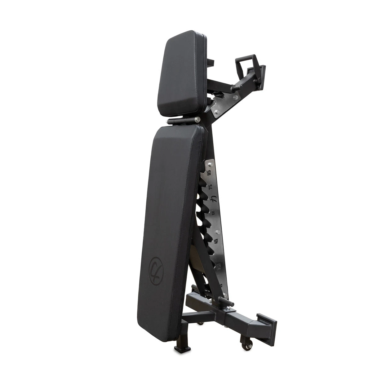 ⤿ Get the most out of your training floor, with a space-saving & easy to handle utility bench.