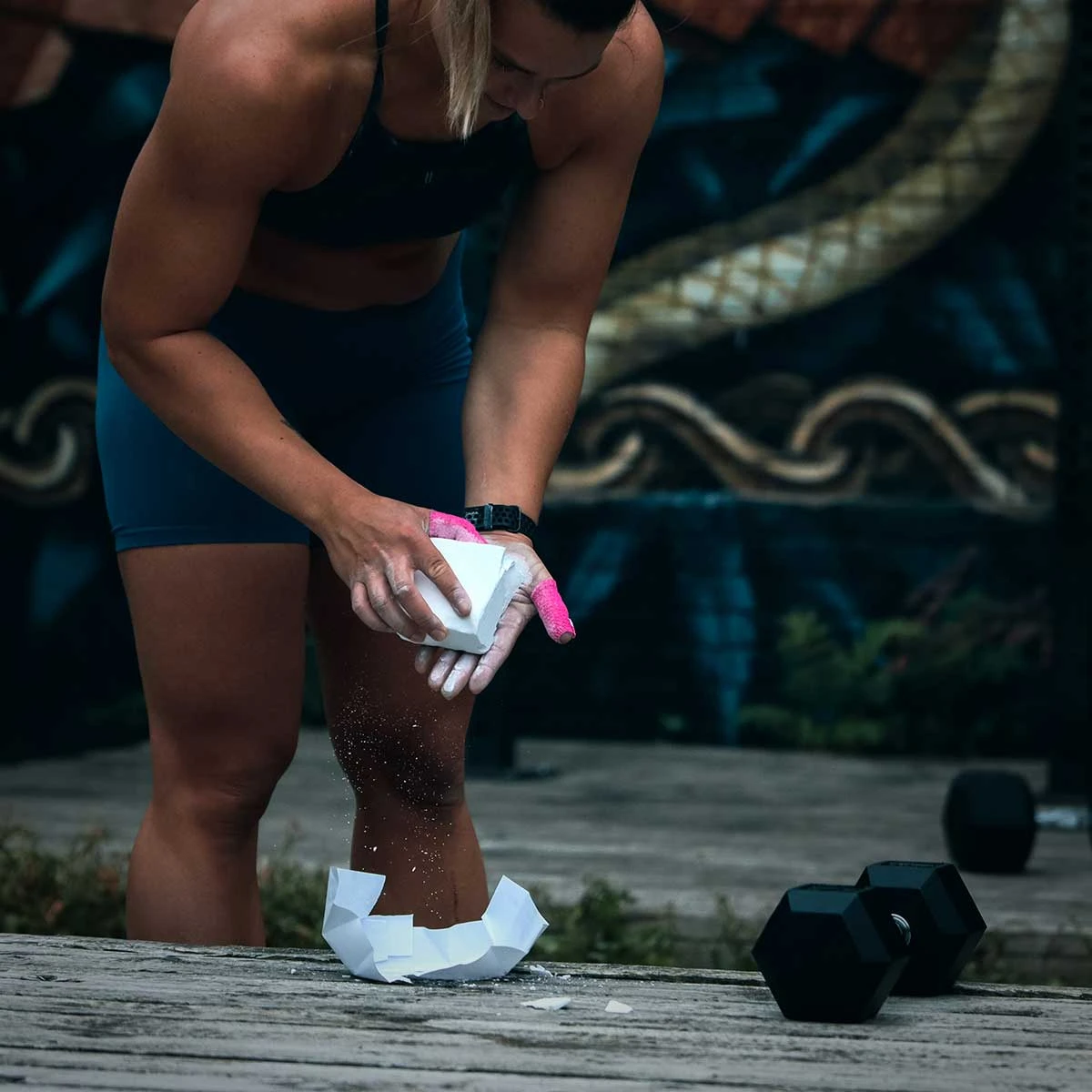 Strengthshop chalk uses a magensium carbonate formula which gives you a reliable and firm grip during lifting. Sweaty palms are a nuisance in the gym, so we designed a chalk that would consistently keep your hands dry thoughout workouts. This package holds 5 cases of 8 blocks (52g each) which will keep you well supplied for months of use.