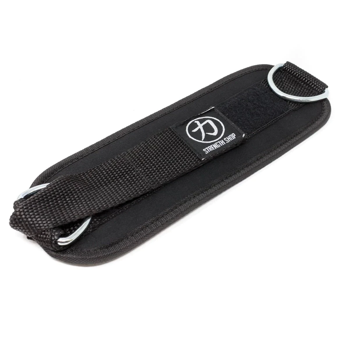 The neoprene material makes it comfortable to wear and the double D-rings provide a secure, stable loop to hook the cable machine onto.