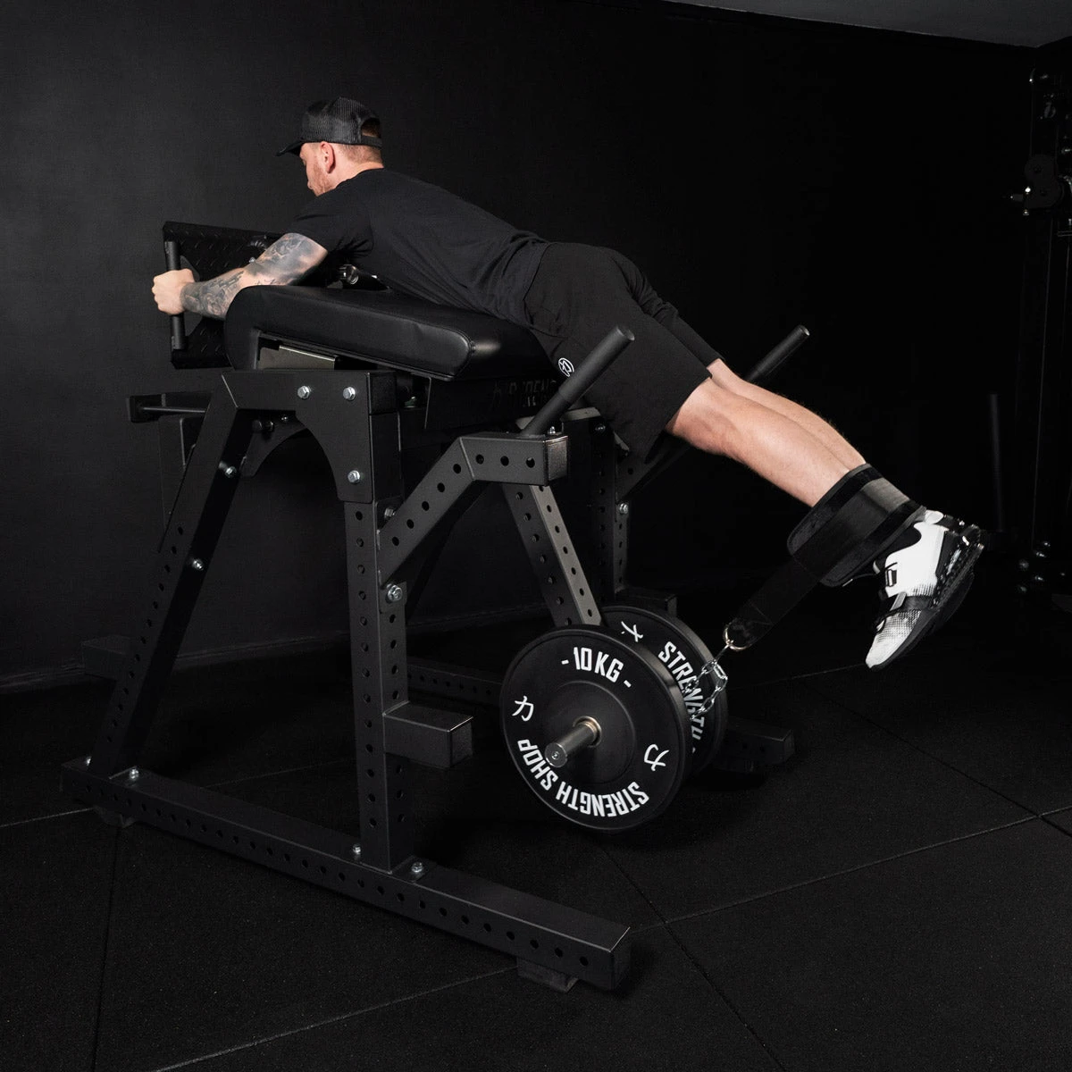 The adjustable footplate and hip pad allow the movement to be tailored to each user, ensuring proper range of motion and comfort. A swing arm with dual 198mm loadable sleeves accommodates significant resistance using Olympic plates, while the supplied belt and chain make setup fast and secure.