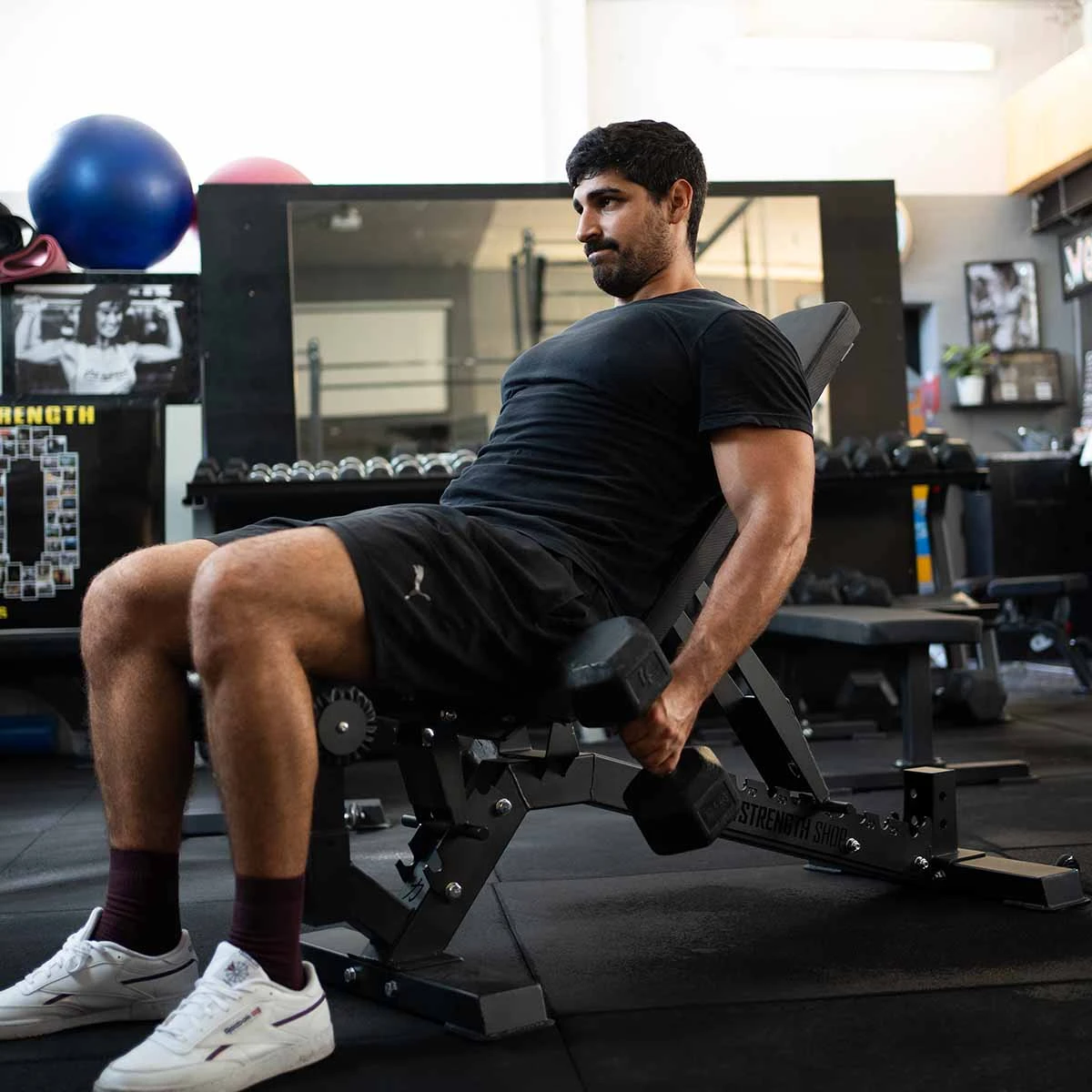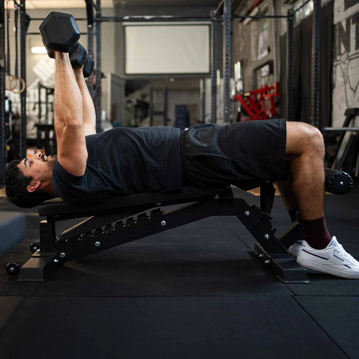Showcasing our new utility bench, the Riot FID Utility Bench which can easily accommodate various exercises. This great piece of equipment has nine adjustable incline back pad settings, classic flat and includes the possibility for a decline position. The height-adjustable foot rollers provide added stability, allowing you to maximize your power output safely and effectively. Whether you’re performing dumbbell rows, seated shoulder presses, or hip thrusts, this bench supports a variety of accessory exercises, making it an essential addition to your home gym to make the most of your space.