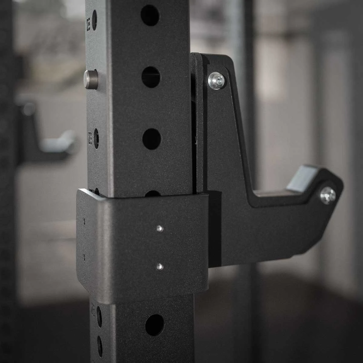 → With the extended ‘landing zone’ with a flatter hook these Sandwich J-Hook can hold a wide range of specialty bars, including 60mm axle barbells Football- and Swiss Bars. This feature allows an effortless repositioning of those bars, ensuring they are perfectly aligned before you lift off. Enjoy greater comfort and efficiency with these hooks!
