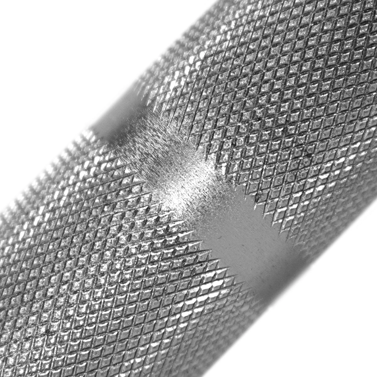 The bar features medium coarse knurling, providing a secure grip without discomfort.