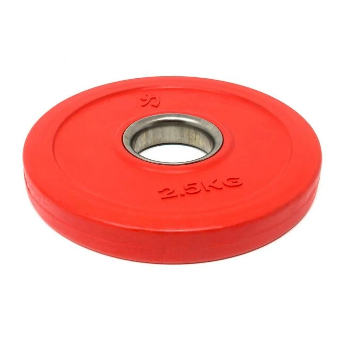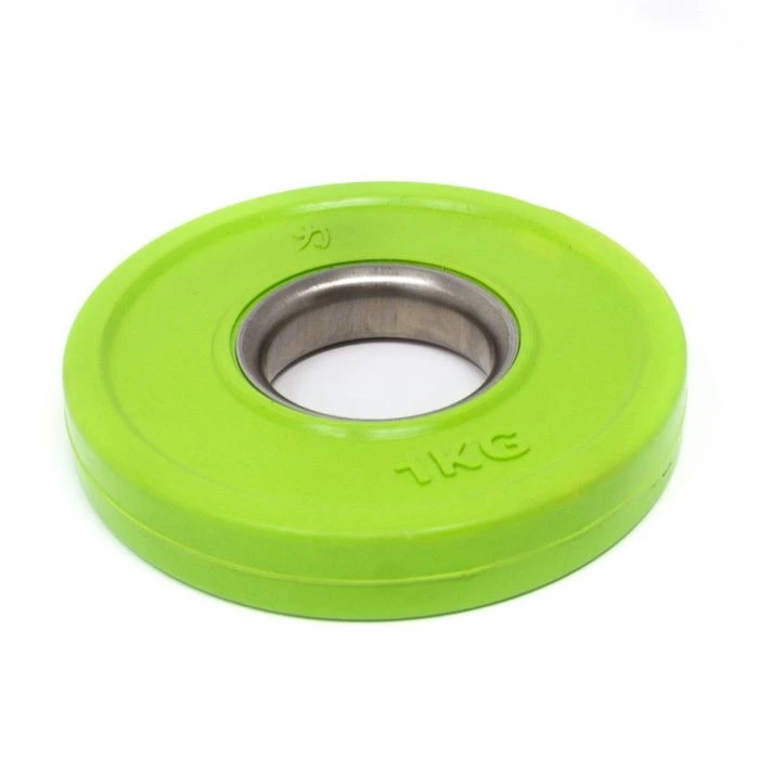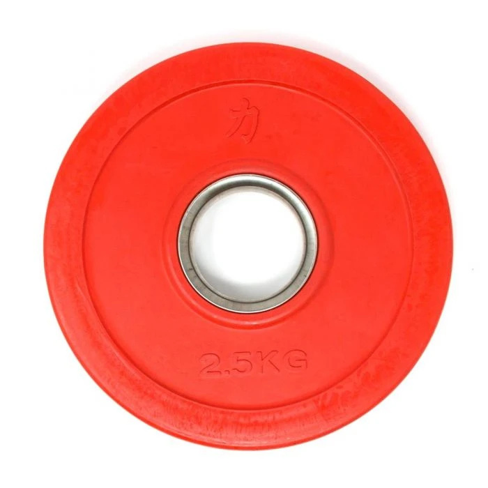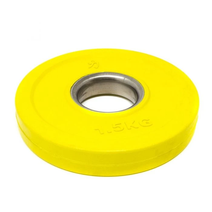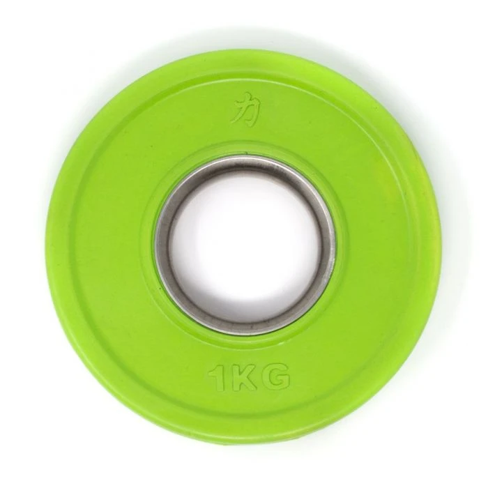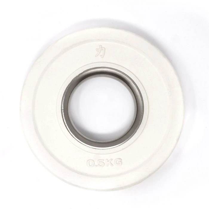 The centre steel bushing makes the loading a smooth thing. They’re made for 50mm standard Olympic barbell sleeves, for a good fit to the bar. Strength Shop’s Coloured Rubber Coated Plates are in line with IWF guidelines. Standard increments of Olympic weightlifting, from at least 1kg (2×0.5kg) up to the “small red ones” of 2.5kg each, are covered with this Rubber Coated Fractional Plate Set, with a total weight of 15kg.
