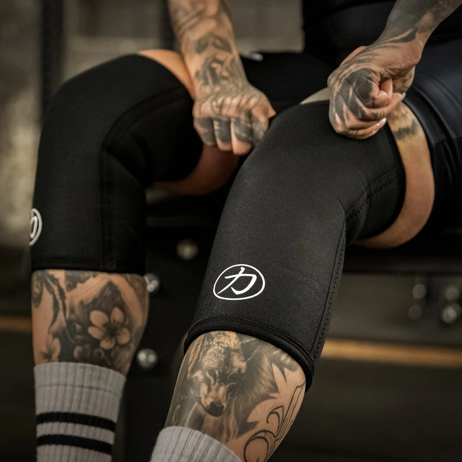 Neoprene knee sleeves with Strength Shop logo, ideal for Powerlifting Strongman, Functional Training and Weightlifting to give support and warmth to the knee during training/lifting.