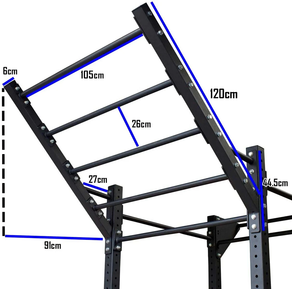 This pull up bar can be wall mounted and is also ideal for attaching along the front of the rig to create a versatile and varied pull up section.