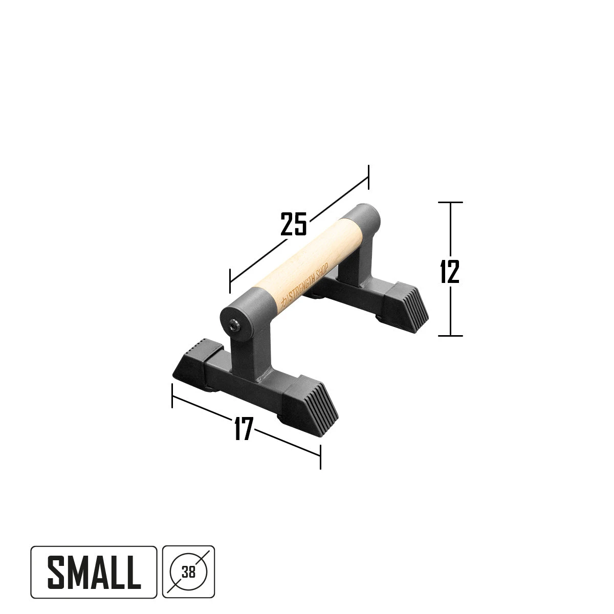 In gymnastics, bars are a sport of their own. These compact versions are, ideal for exercises like L-sits, regular or handstand push-ups, parallettes are a staple for body weight training and all versions of calisthenics. The thick and comfortable 38mm wooden grips are bolted into the steel base, made of black powder coated steel. The untreated wood bar is ideal for secure grip, with or without chalk, plus they come with rubber feet for safe placement on the majority of gym flooring.ed.